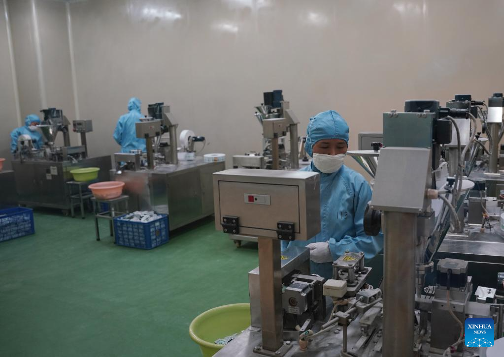 Staff members work at a packing workshop of a pharmaceutical company in Wenshan City, Wenshan Zhuang and Miao Autonomous Prefecture, southwest China's Yunnan Province, May 31, 2023.?(Xinhua/Zhang Haobo)