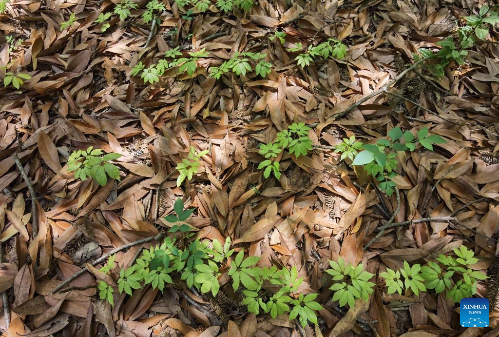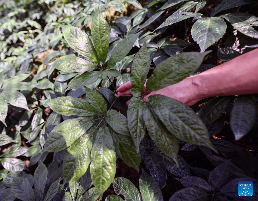 This photo shows wild panax notoginseng in Xichou County, Wenshan Zhuang and Miao Autonomous Prefecture, southwest China's Yunnan Province, May 31, 2023.?(Xinhua/Lan Hongguang)