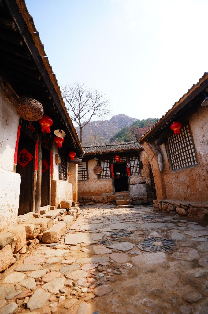 This photo taken on March 30, 2023 shows old houses made of stone and mud in Luotuowan Village of Fuping County, north China's Hebei Province. (Photo by Bai Xu/Xinhua)