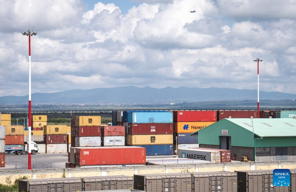 This photo taken on May 23, 2023 shows containers to be transported near the Nairobi Station of the Mombasa-Nairobi Railway in Nairobi, Kenya. (Xinhua/Wang Guansen)