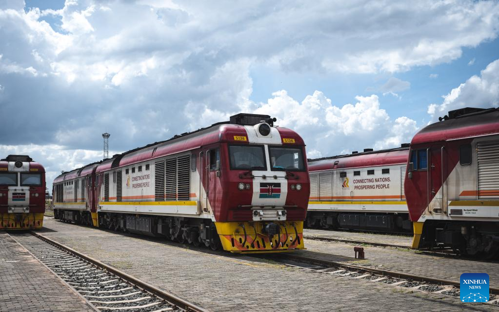This photo taken on May 23, 2023 shows trains of the Mombasa-Nairobi Railway in Nairobi, Kenya. (Xinhua/Wang Guansen)