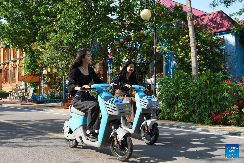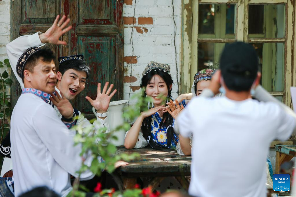 Tourists pose for photos on Liuxing Street in Yining City, Ili Kazak Autonomous Prefecture, northwest China's Xinjiang Uygur Autonomous Region, May 17, 2023. According to comprehensive calculation through a big data platform for tourism statistics and sample survey, from January to April 2023, Xinjiang received over 51.19 million tourists, a year-on-year increase of 29.56%. Meanwhile, tourism revenue reached 42.64 billion yuan (about 6.03 billion U.S. dollars), up 60.59% year on year. (Xinhua/Hao Zhao)