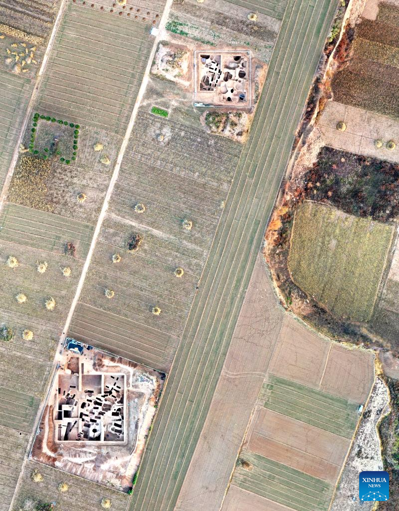 This aerial photo taken on April 6, 2022 shows the ruins of a village dating back to more than 3,000 years in the current Zhaoyao Village of Wu'an City, north China's Hebei Province. (Xinhua)