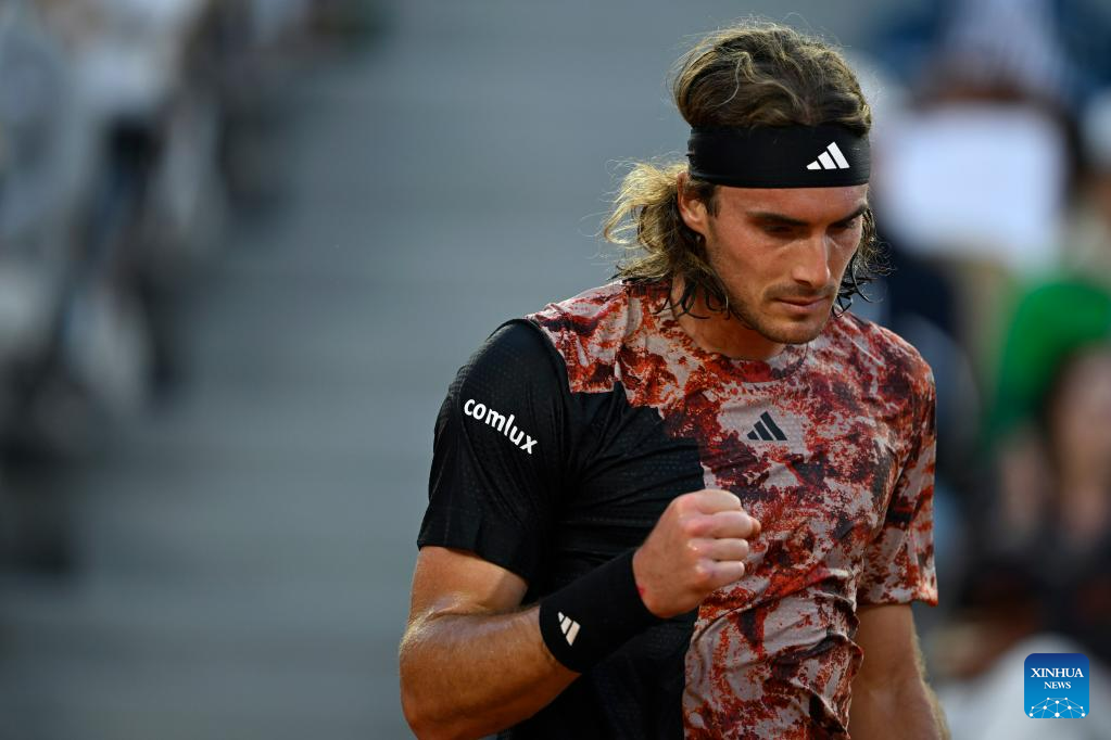 Stefanos Tsitsipas of Greece reacts during the men's singles third round match between Stefanos Tsitsipas of Greece and Diego Schwartzman of Argentina at the French Open tennis tournament at Roland Garros in Paris, France, on June 2, 2023. (Photo by Julien Mattia/Xinhua)