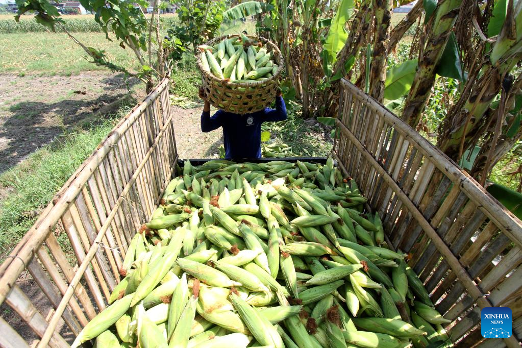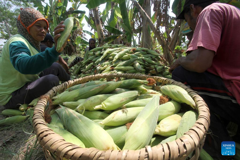 Farmers sort sweet corn in Gatak village in Sukoharjo, Indonesia, June 2, 2023. (Photo by Bram Selo/Xinhua)
