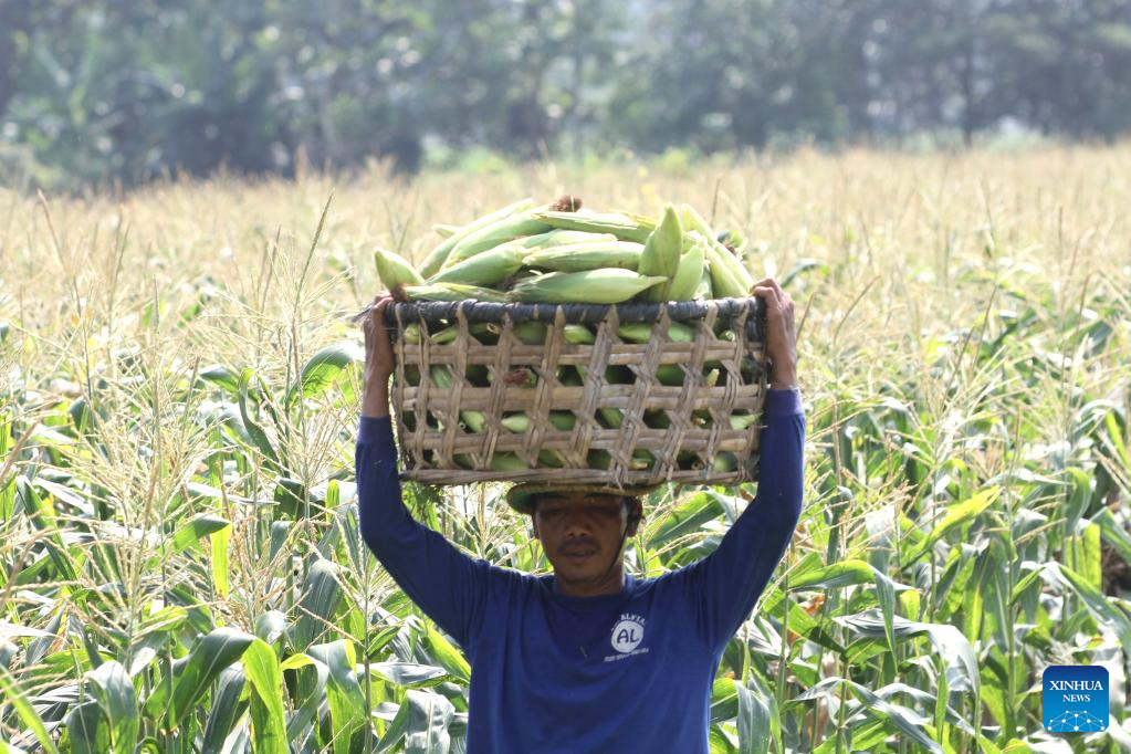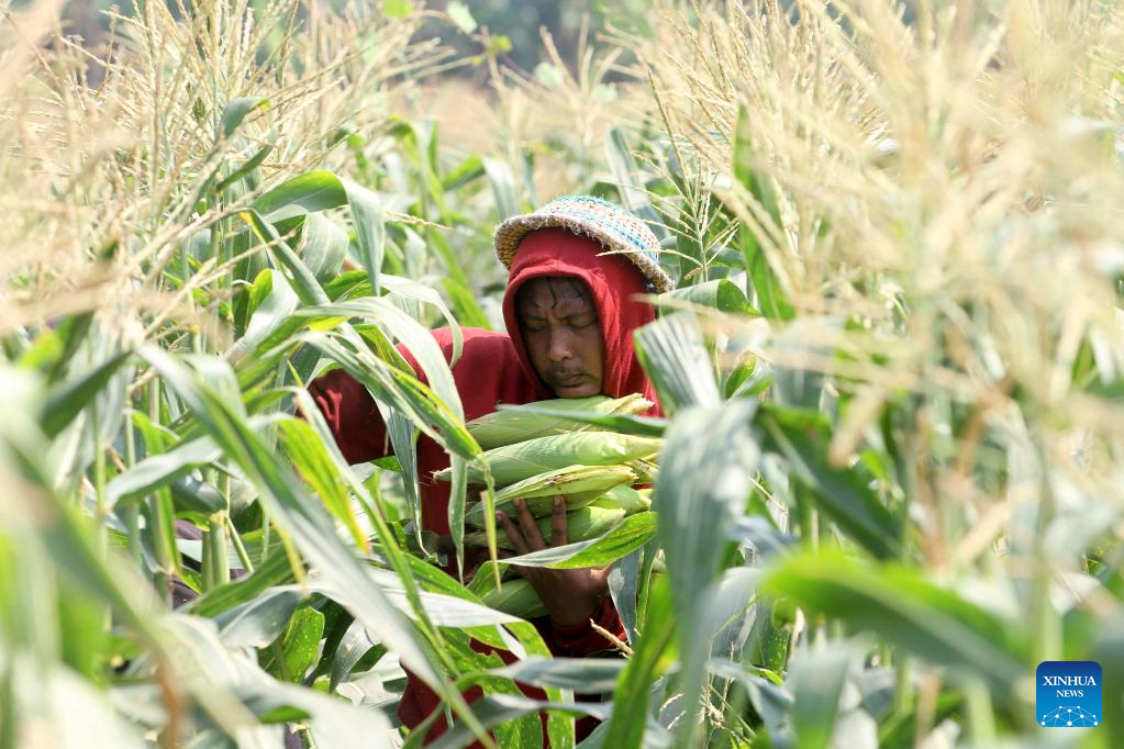 A farmer picks sweet corn in Gatak village, Sukoharjo, Indonesia, June 2, 2023. (Photo by Bram Selo/Xinhua)