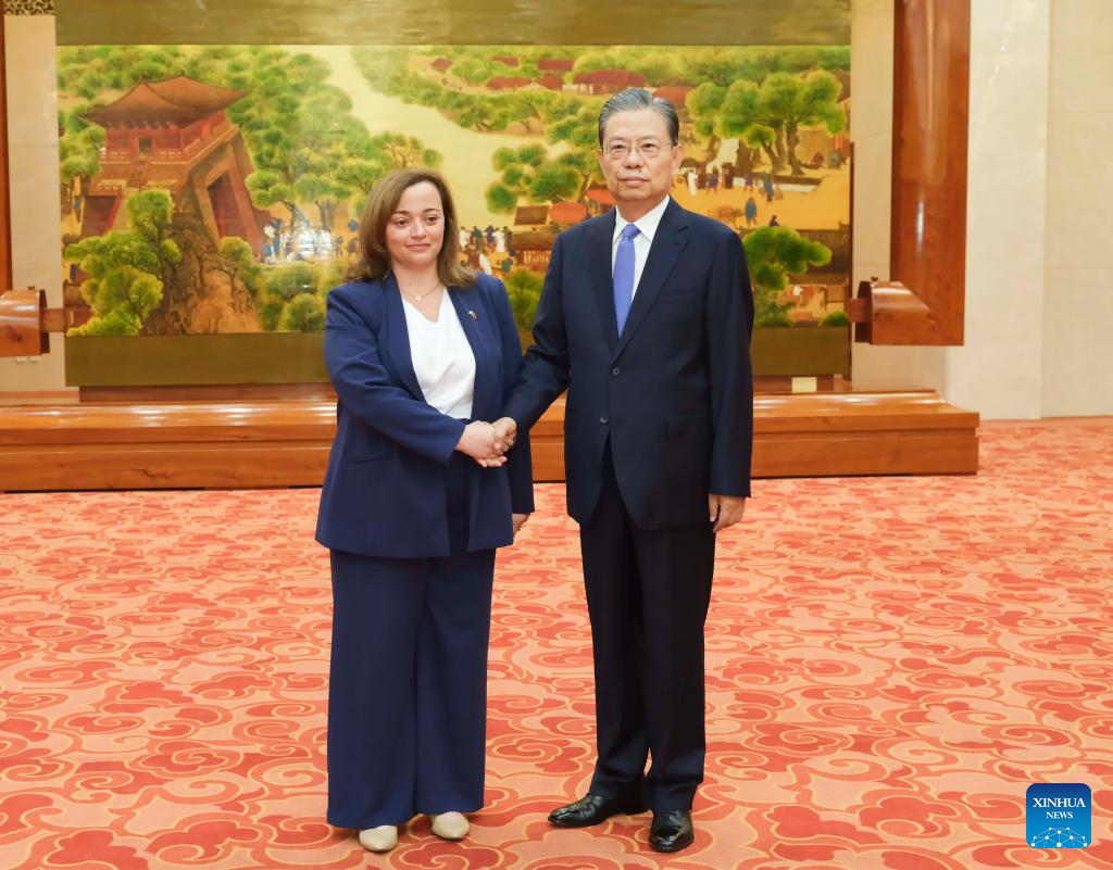 BEIJING, June 2 (Xinhua) -- China's top legislator Zhao Leji met with Cecilia Moreau, president of the Argentine Chamber of Deputies, in Beijing on Friday, calling for close friendly exchanges at all levels between the legislatures of the two countries.