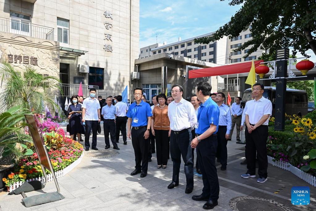 Chinese Vice Premier Ding Xuexiang, also a member of the Standing Committee of the Political Bureau of the Communist Party of China Central Committee, visits a middle school that will serve as one of the test centers in Beijing, capital of China, June 3, 2023. Ding on Saturday inspected preparations in the city of Beijing and the Ministry of Education for this year's college entrance exam, to be held in early June. (Xinhua/Zhang Ling)