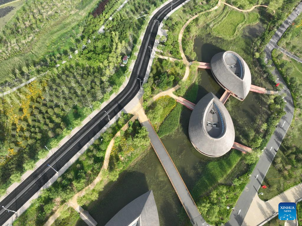 This aerial photo taken on June 2, 2023 shows the Zangang area of Xiong'an New Area, north China's Hebei Province. Located about 100 kilometers southwest of Beijing, the Xiong'an New Area has been designed as a major recipient of functions previously located in Beijing but which are not essential to its role as China's capital. Six years on, Xiong'an New Area, China's "city of the future", is offering a glimpse of the Chinese vision of modernity. (Xinhua/Xing Guangli)