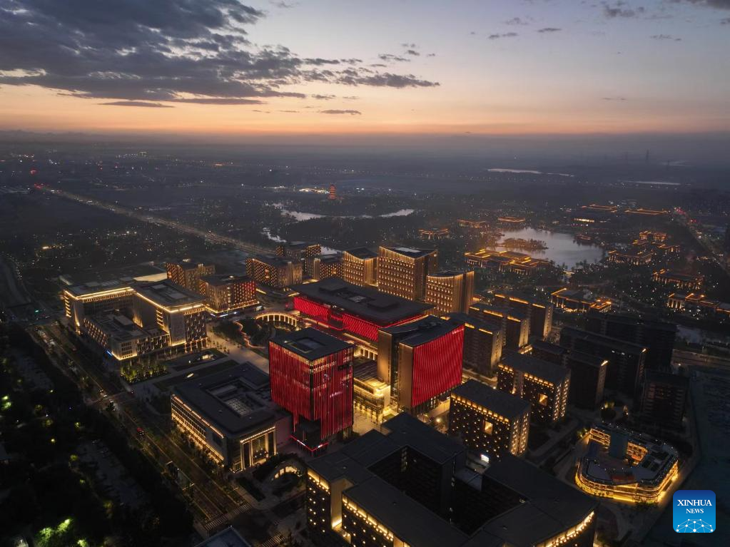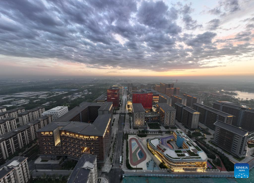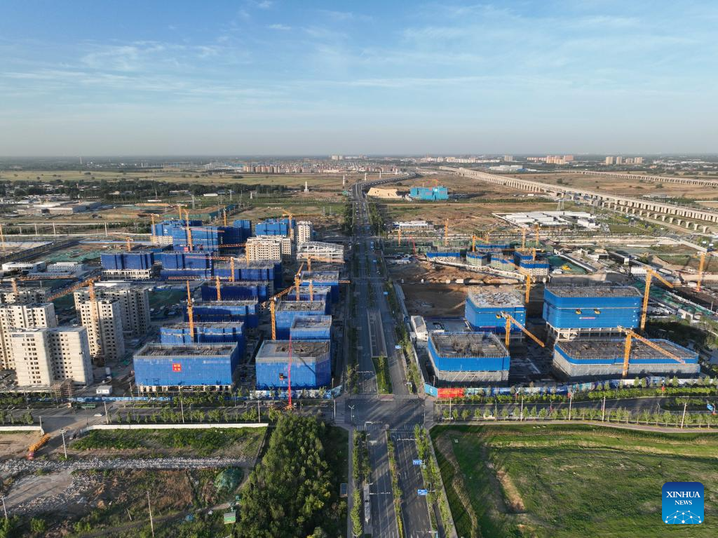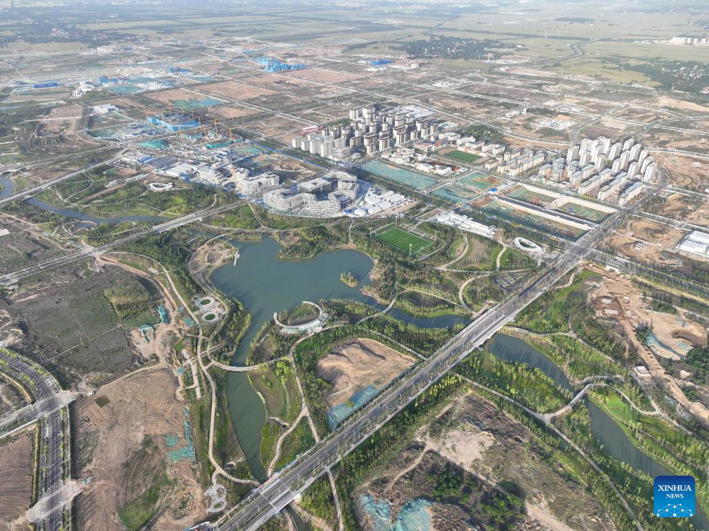 This aerial photo taken on June 1, 2023 shows the start-up area in Xiong'an New Area, north China's Hebei Province. Located about 100 kilometers southwest of Beijing, the Xiong'an New Area has been designed as a major recipient of functions previously located in Beijing but which are not essential to its role as China's capital. Six years on, Xiong'an New Area, China's "city of the future", is offering a glimpse of the Chinese vision of modernity. (Xinhua/Xing Guangli)