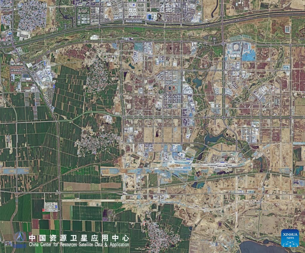 This satellite photo taken on Feb. 23, 2017 shows the start-up area in Xiong'an New Area, north China's Hebei Province. Located about 100 kilometers southwest of Beijing, the Xiong'an New Area has been designed as a major recipient of functions previously located in Beijing but which are not essential to its role as China's capital. Six years on, Xiong'an New Area, China's "city of the future", is offering a glimpse of the Chinese vision of modernity. (China Center for Resources Satellite Data and Application/Handout via Xinhua)
