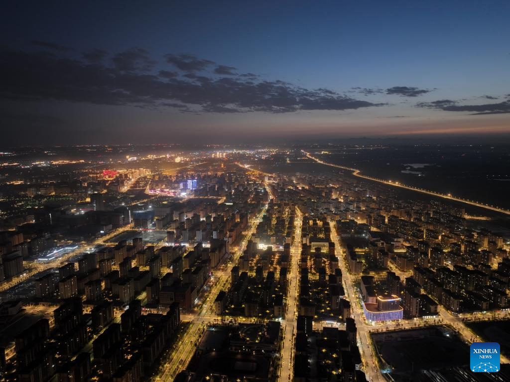 This aerial photo taken on May 31, 2023 shows the Rongdong area of Xiong'an New Area, north China's Hebei Province. Located about 100 kilometers southwest of Beijing, the Xiong'an New Area has been designed as a major recipient of functions previously located in Beijing but which are not essential to its role as China's capital. Six years on, Xiong'an New Area, China's "city of the future", is offering a glimpse of the Chinese vision of modernity. (Xinhua/Xing Guangli)