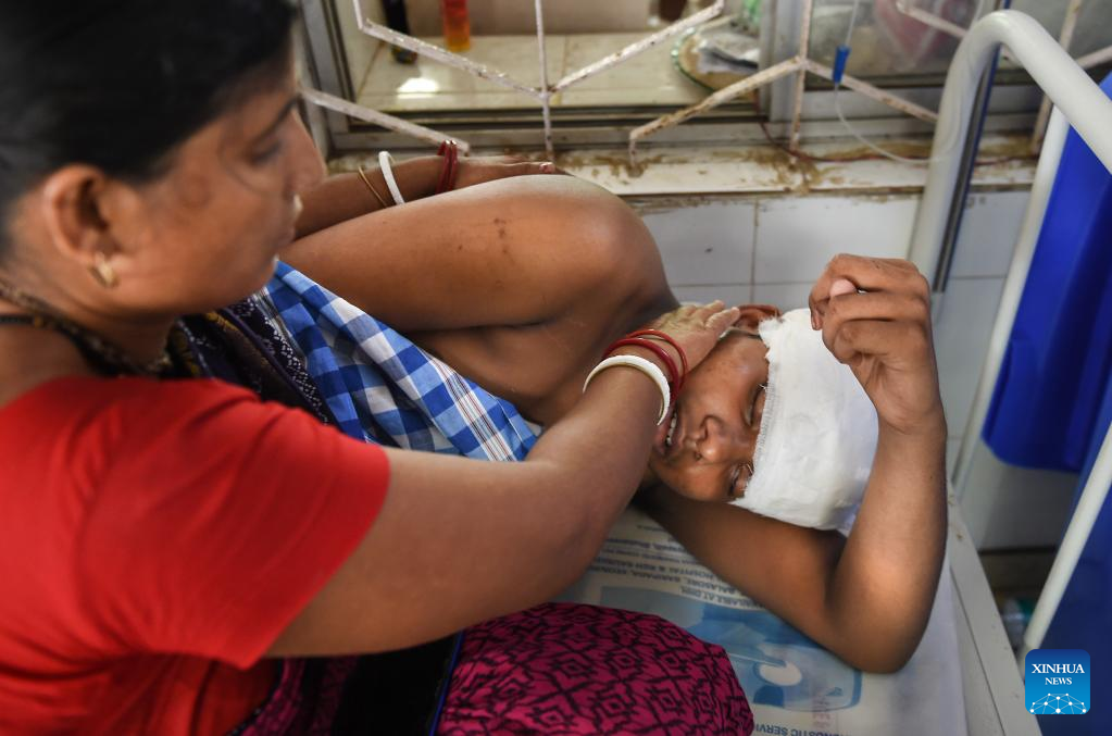 This photo taken on June 4, 2023 shows an injured passenger of a train collision at a hospital in Balasore district of the eastern Indian state of Odisha. (Xinhua/Javed Dar)