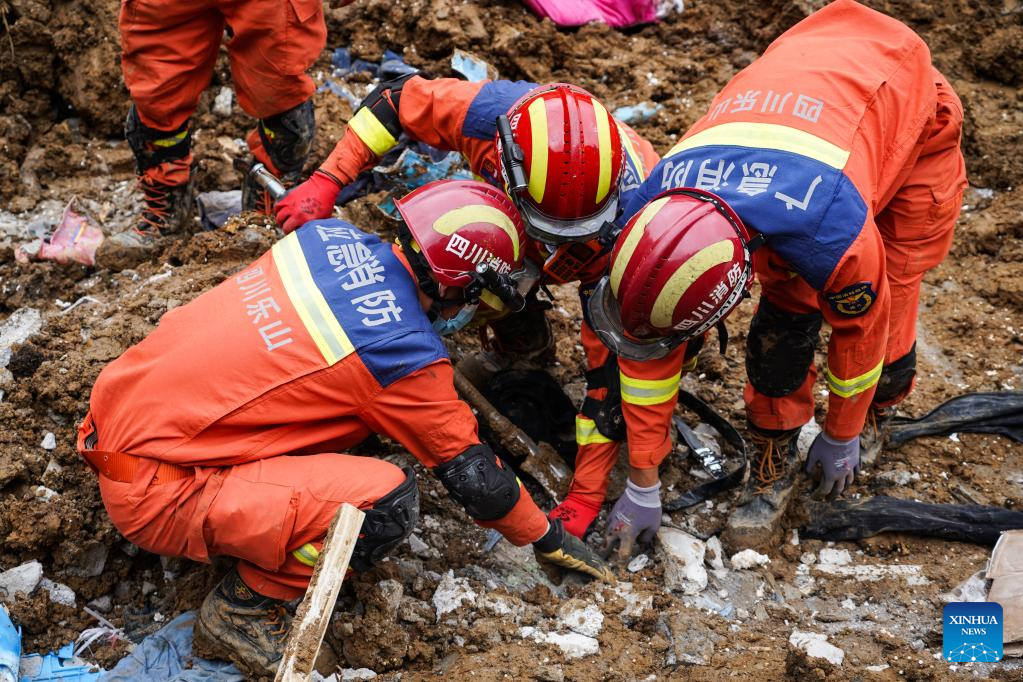 Rescuers work at the site of a mountain collapse at Yongsheng Township of Leshan City, southwest China's Sichuan Province, June 4, 2023. (Xinhua)