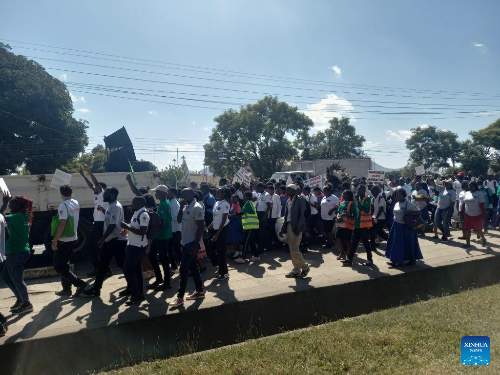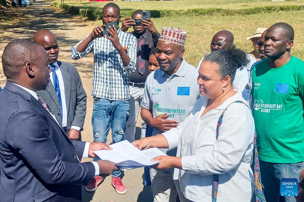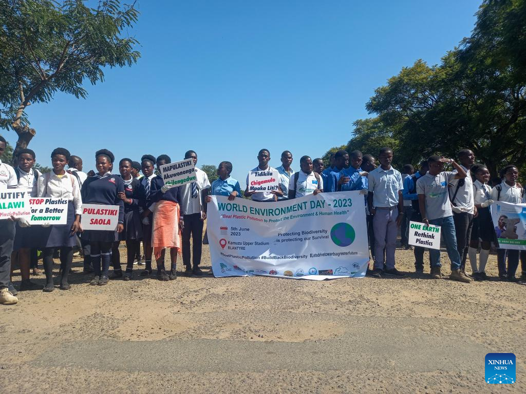 People take part in an event commemorating World Environment Day in Blantyre, Malawi, on June 5, 2023. On World Environment Day which falls on Monday this year, environmentalists in Malawi presented a petition to the country's judiciary through the High Court, calling for swift action on the ban of plastics in the country. (Photo by Joseph Mizere/Xinhua)