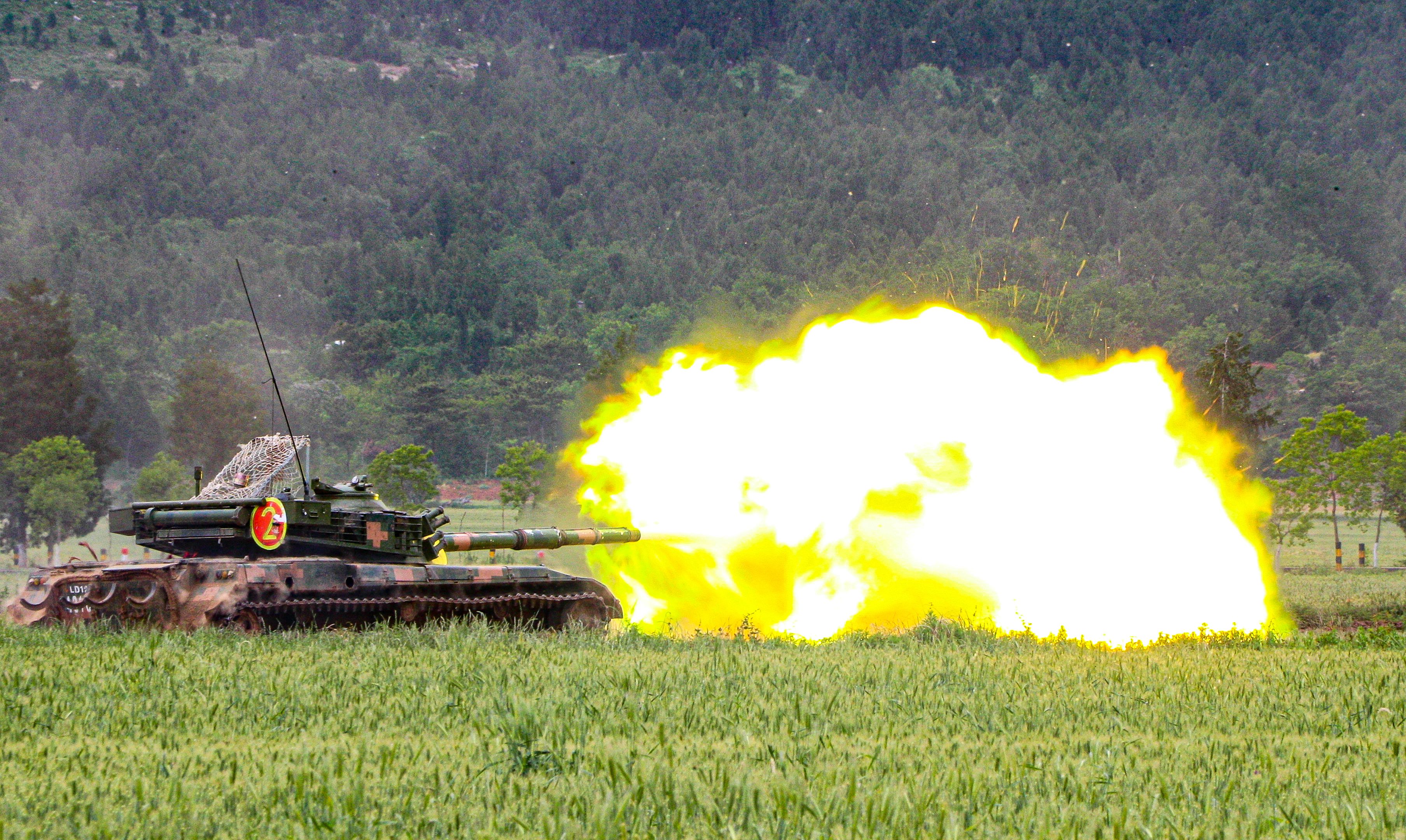 Soldiers assigned to a brigade under the PLA 71st Group Army utilize a main battle tank to fire at simulated targets during a live-fire exercise in late May, 2023. (eng.chinamil.com.cn/Photo by Hu Shuai)
