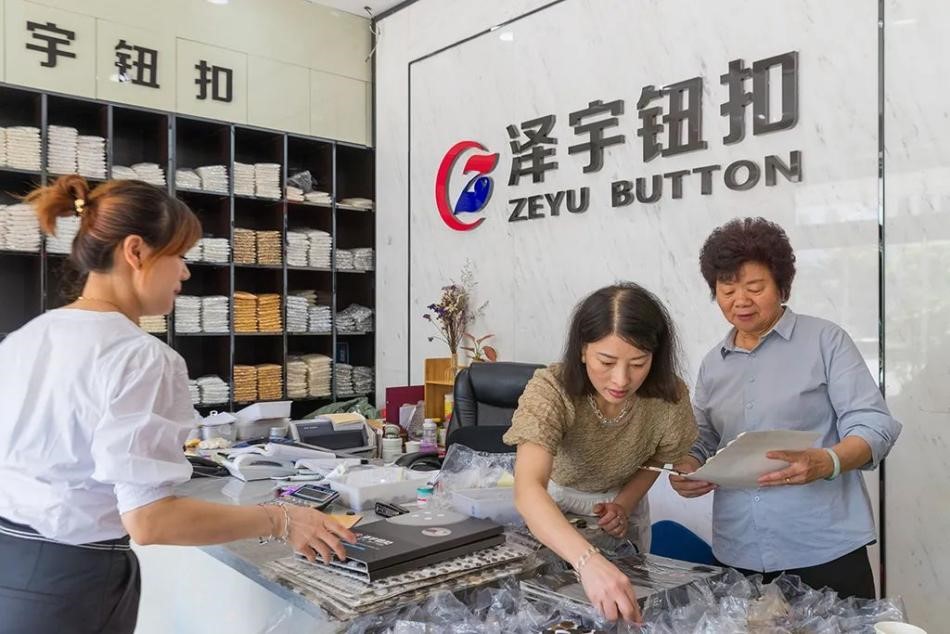 Today, more than 30 percent of the business in the button market of Qiaotou is completed online. A modern button manufacturing base that integrates production, development, marketing, information and services is taking shape in the township.