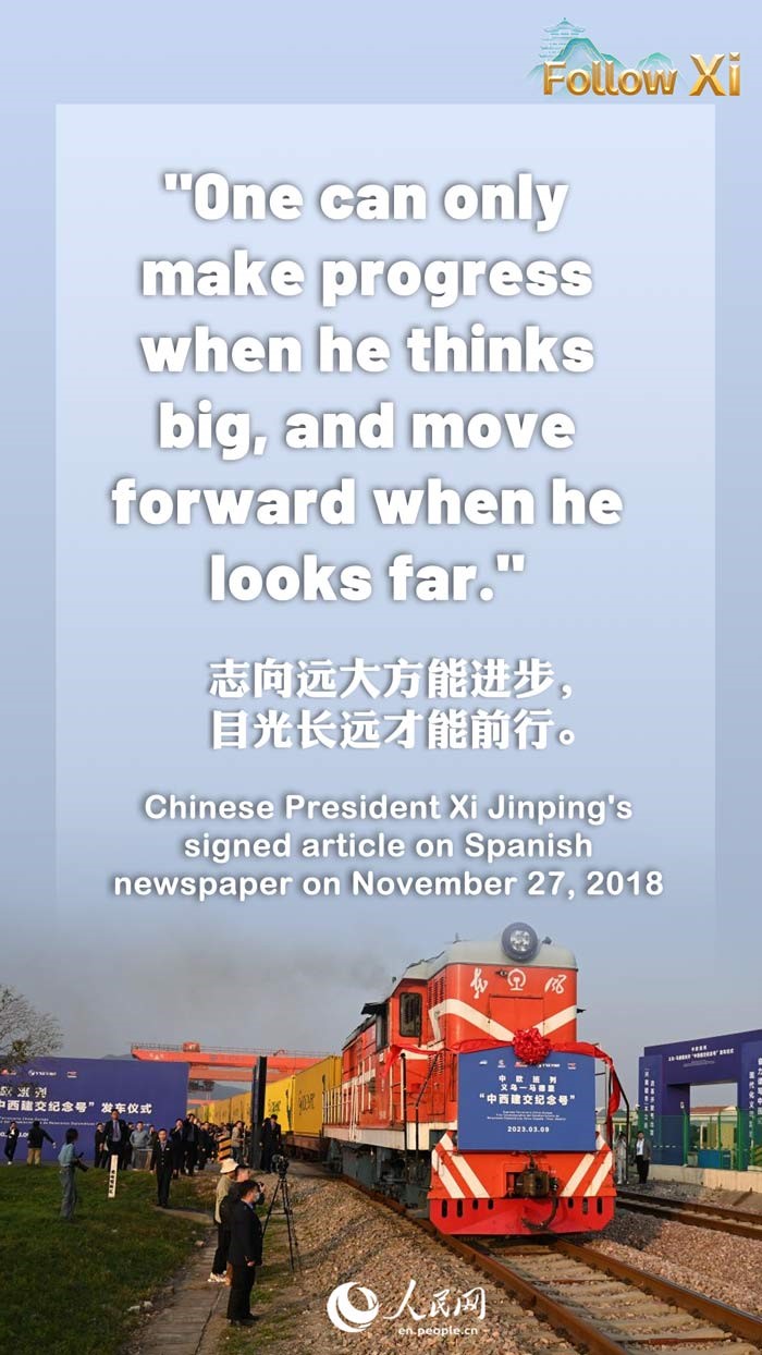 The Spanish philosopher Jose Ortega Gasset once observed, one can only make progress when he thinks big, and move forward when he looks far. China looks forward to working with Spain to share opportunities and jointly meet challenges. Together, we can write a new chapter in China-Spain relations and usher in an even brighter future for our peoples.