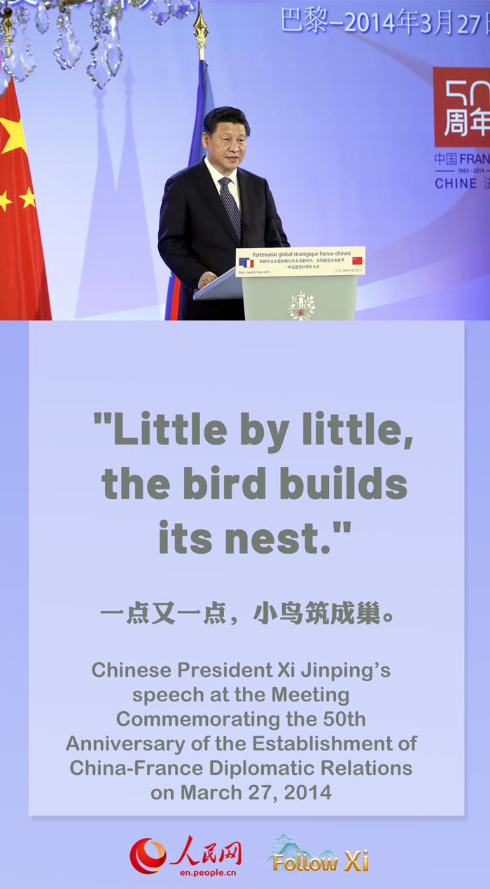 —— Chinese President Xi Jinping's speech at the Meeting Commemorating the 50th Anniversary of the Establishment of China-France Diplomatic Relations on March 27, 2014