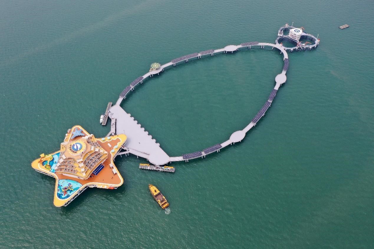 On one end of the "necklace" there is a flower-shaped intelligent fish farm, and on the other end stands a multi-functional space in the shape of a starfish.