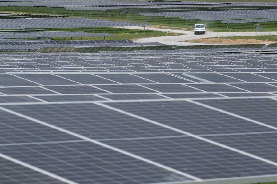 This photo taken on March 24, 2023 shows solar panels of the Francisco Pizarro photovoltaic power plant in Caceres, Spain. (Xinhua/Meng Dingbo)