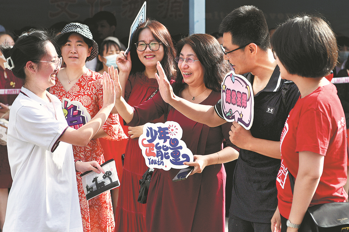 In Jinan, Shandong province, a male senior high student surnamed Li wore a qipao — a traditional Chinese dress considered auspicious — to cheer on his peers. Li, who has already been recommended for admission to Sun Yat-sen University in Guangdong province, didn't need to take the entrance exam this year.