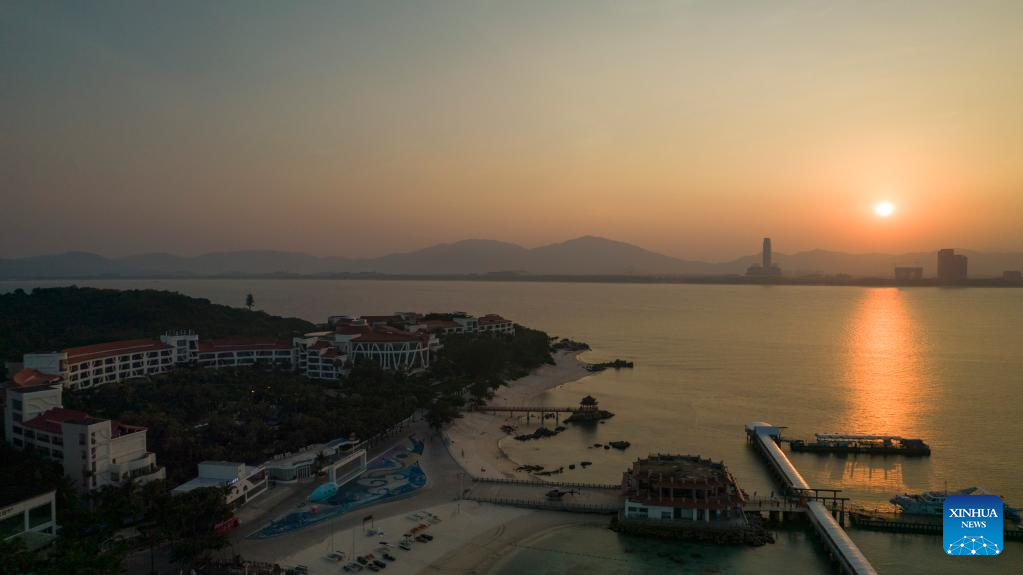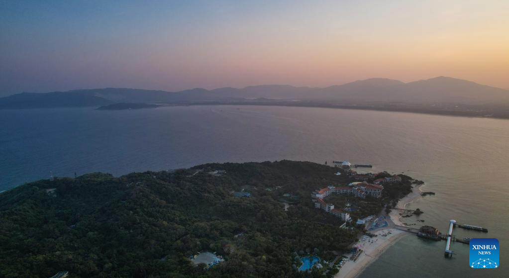 This aerial photo taken on May 18, 2023 shows a marine ranch in the sea area of Wuzhizhou Island in Sanya, south China's Hainan Province. (Xinhua/Fan Yuqing)?