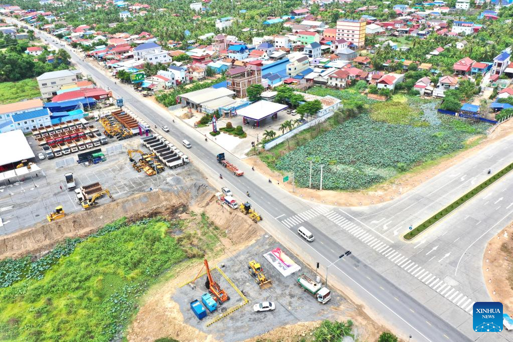 This aerial photo taken on June 5, 2023 shows the construction site of Phnom Penh-Bavet Expressway, the kingdom's second Chinese-invested expressway, in Kandal province, Cambodia. Cambodia on Wednesday broke ground on the second Chinese-invested expressway connecting the capital Phnom Penh with Bavet City of Svay Rieng province on the border with Vietnam. (Photo by Ly Lay/Xinhua)