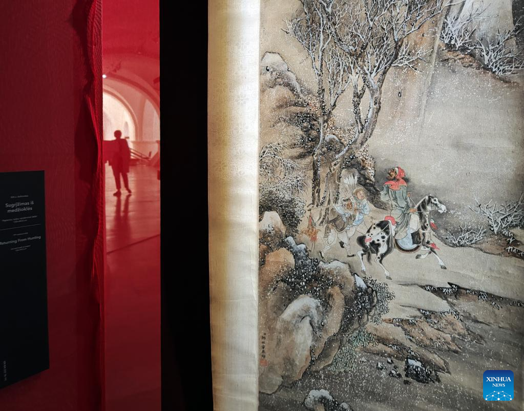 This photo taken on June 7, 2023 shows a painting at a Chinese painting exhibition in Vilnius, Lithuania. The exhibition, which displays over 100 pieces of Chinese paintings, will last until Sept. 3. (Photo by Yang Weihua/Xinhua)