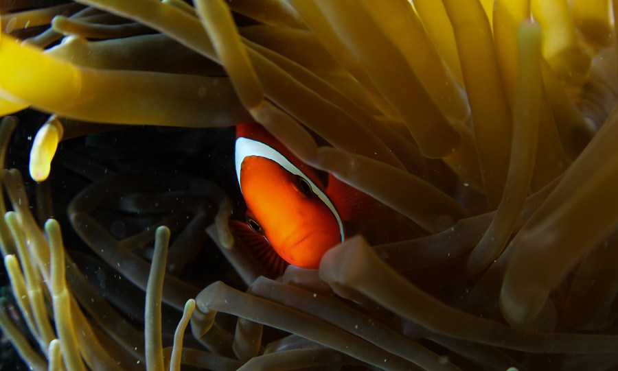 This photo taken on May 17, 2023 shows a clownfish at a marine ranch in the sea area of Wuzhizhou Island in Sanya, south China's Hainan Province. (Xinhua/Yang Guanyu)