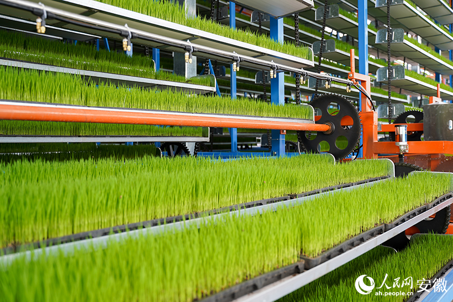 Rice seedling breeding machines at an intelligent seedling cultivation center in the Munan agricultural industrial park in Jin'an district, Lu'an city, east China's Anhui Province. (People's Daily Online/Wang Rui)