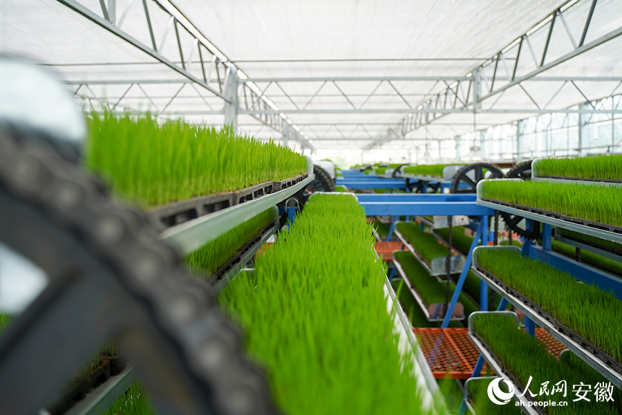 Rice seedling breeding machines at an intelligent seedling cultivation center in the Munan agricultural industrial park in Jin'an district, Lu'an city, east China's Anhui Province. (People's Daily Online/Wang Rui)