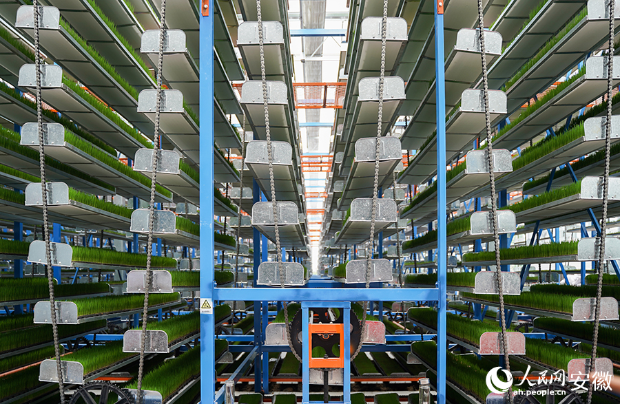 Rice seedling breeding machines at an intelligent seedling cultivation center in the Munan agricultural industrial park in Jin'an district, Lu'an city, east China's Anhui Province. (People's Daily Online/Wang Rui)