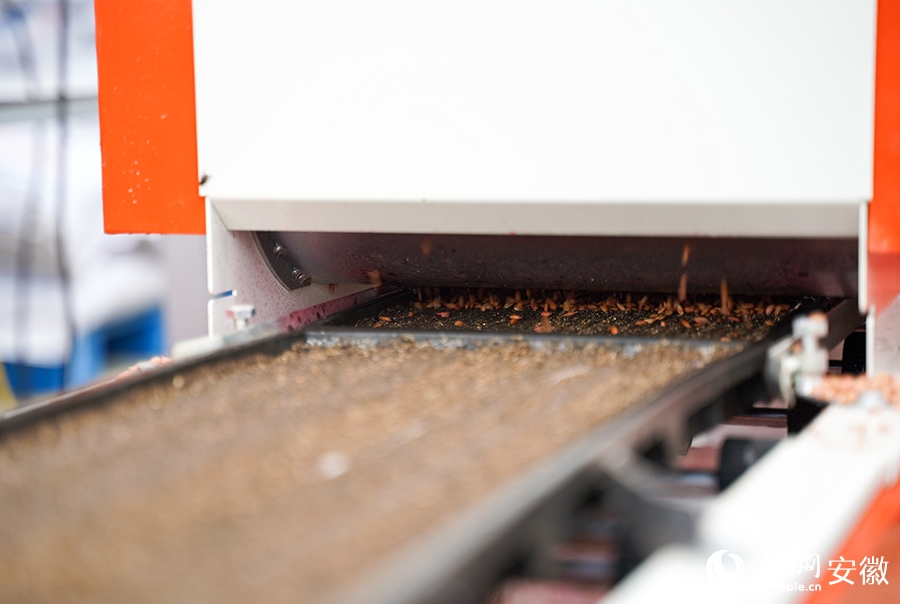 Rice seeds are sowed into seedling trays of a rice seedling breeding machine at an intelligent seedling cultivation center in the Munan agricultural industrial park in Jin'an district, Lu'an city, east China's Anhui Province. (People's Daily Online/Wang Rui)