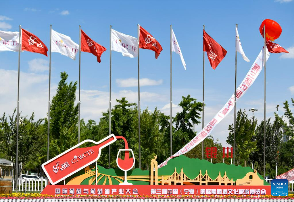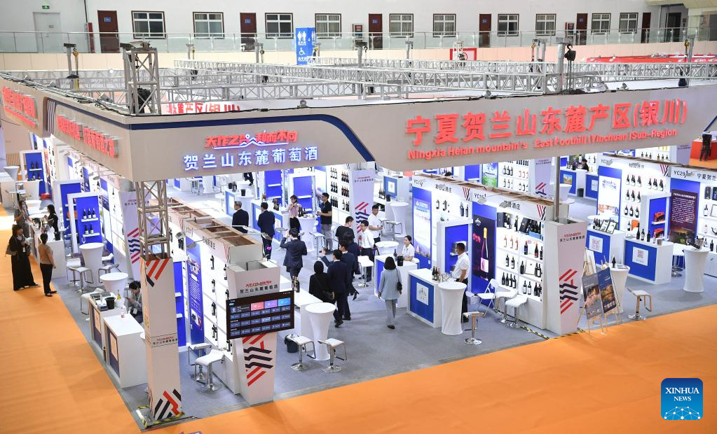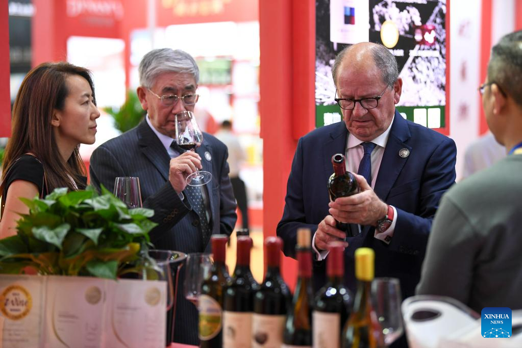 People visit a wine-themed international conference and an expo in Yinchuan, northwest China's Ningxia Hui Autonomous Region, June 9, 2023. (Xinhua/Wang Peng)
