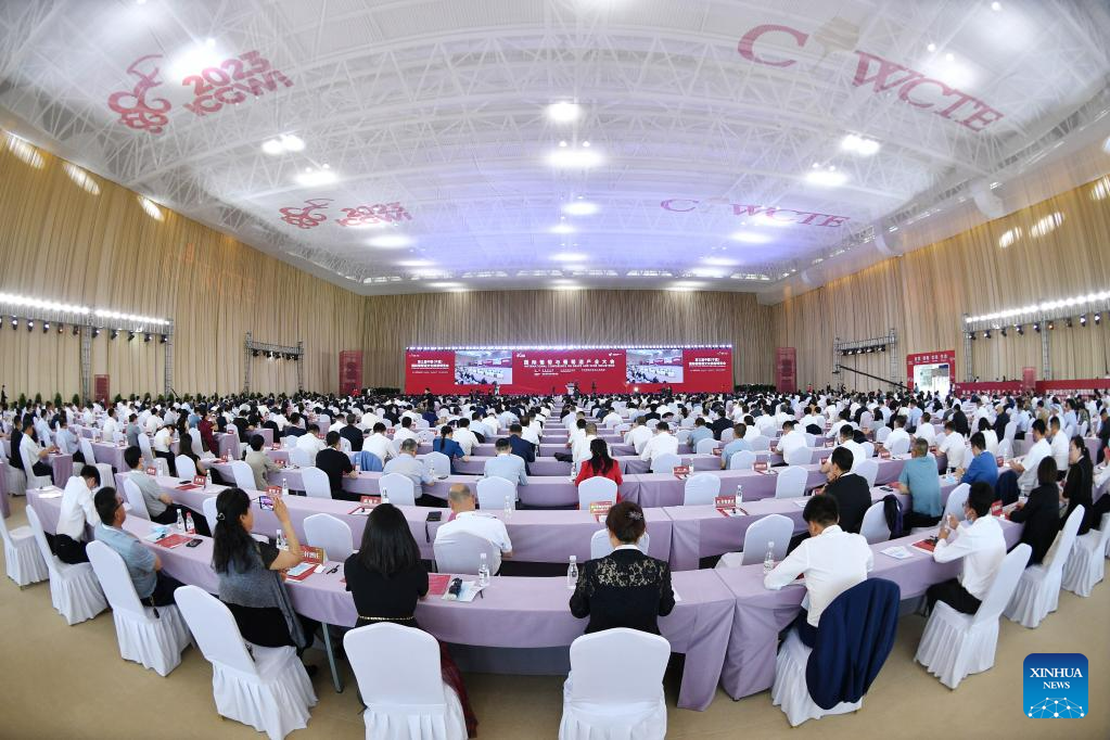 This photo taken on June 9, 2023 shows the opening ceremony of a wine-themed international conference and an expo in Yinchuan, northwest China's Ningxia Hui Autonomous Region. (Xinhua/Wang Peng)