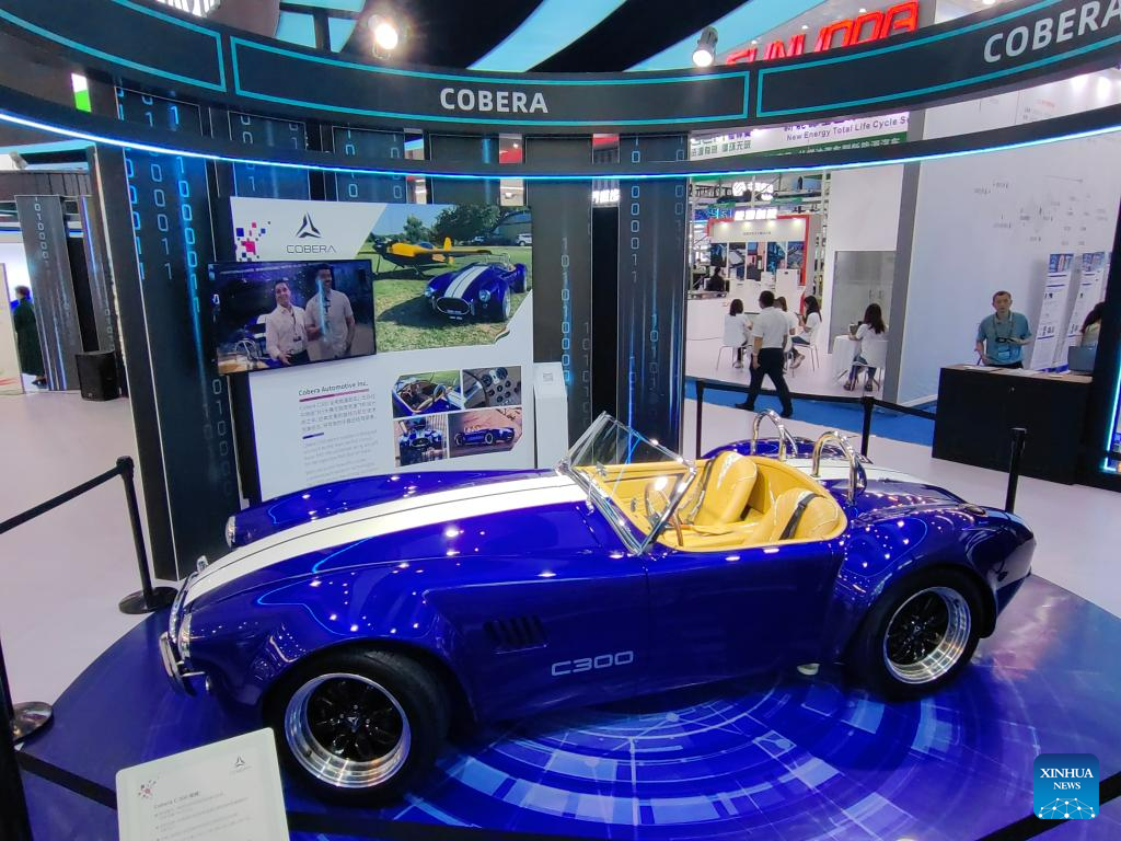 This photo taken on June 9, 2023 shows a new energy vehicle on an exhibition of the 2023 World Power Battery Conference in Yibin, southwest China's Sichuan Province, June 9, 2023. Themed "New Green Power for the Future and New Growth-driver for the World", the 2023 World Power Battery Conference kicked off here on Friday. (Xinhua/Hu Xu)
