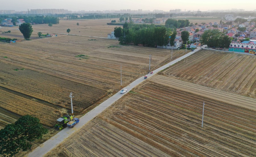 Within just three days, he harvested more than 1,400 mu (about 93.3 hectares) of wheat with the use of six combine harvesters. After he completes this task, Liu drives a tractor equipped with assisted driving capabilities to sow corn and soybeans.