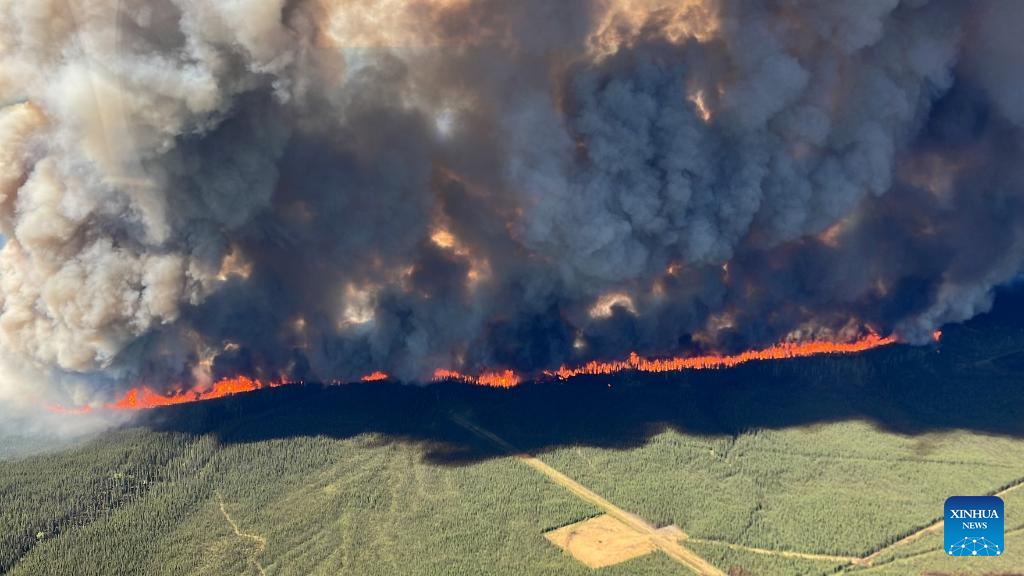 Undated aerial photo provided by BC Wildfire Service on June 9, 2023 shows wildfires burning in Northeast region of British Columbia, Canada. With more than nine million acres of land burnt, over 20,000 residents evacuated and at least 400 fires still active, half of which are believed out of control, a staggering series of figures revealed on Wednesday by Canadian Minister of Emergency Preparedness Bill Blair showed that the country is facing an unprecedented battle against the raging wildfires. (BC Wildfire Service/Handout via Xinhua)