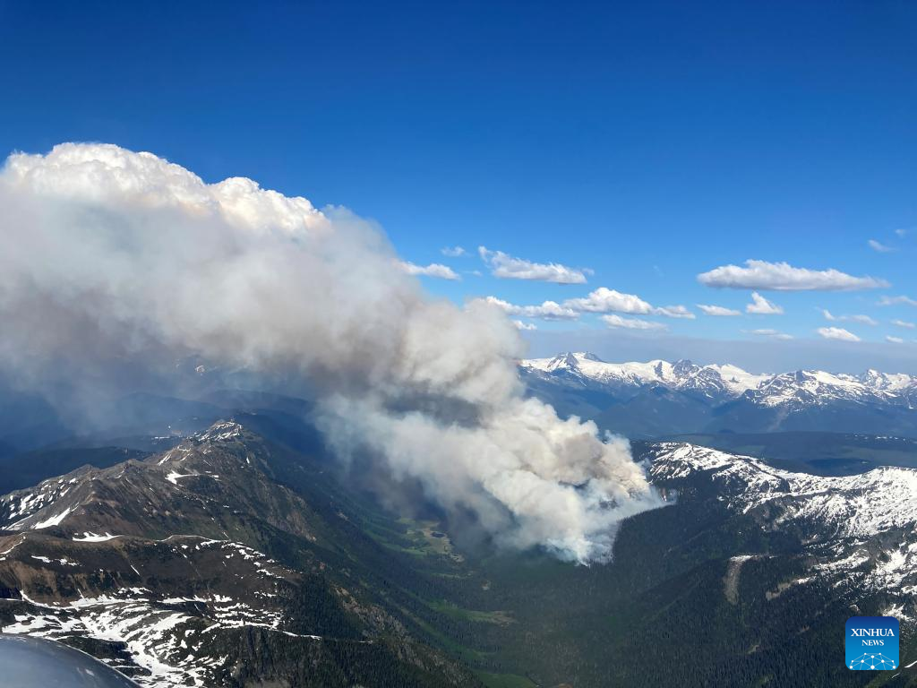 An aerial image taken on June 4, 2023 shows the magnitude of wildfires in Chapel Creek, British Columbia, Canada. With more than nine million acres of land burnt, over 20,000 residents evacuated and at least 400 fires still active, half of which are believed out of control, a staggering series of figures revealed on Wednesday by Canadian Minister of Emergency Preparedness Bill Blair showed that the country is facing an unprecedented battle against the raging wildfires. (BC Wildfire Service/Handout via Xinhua)
