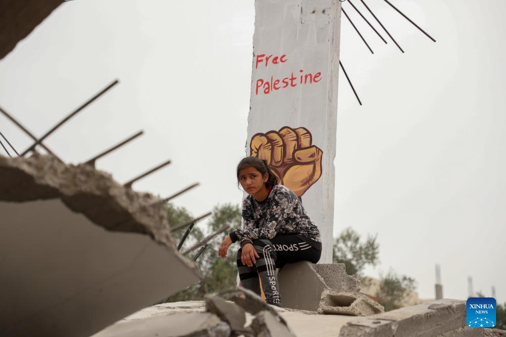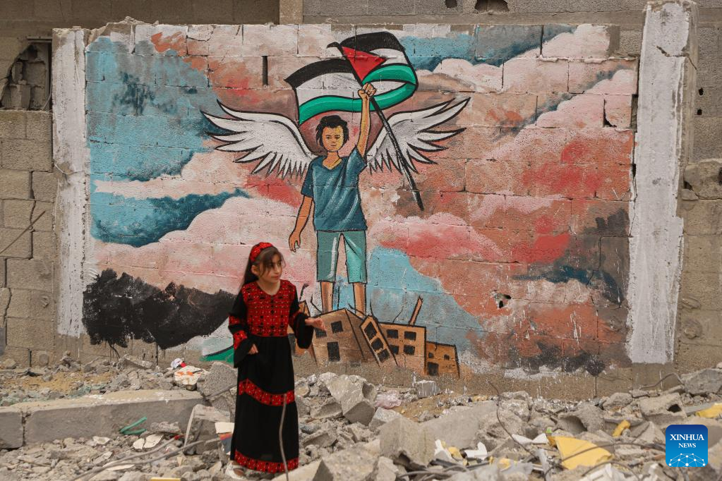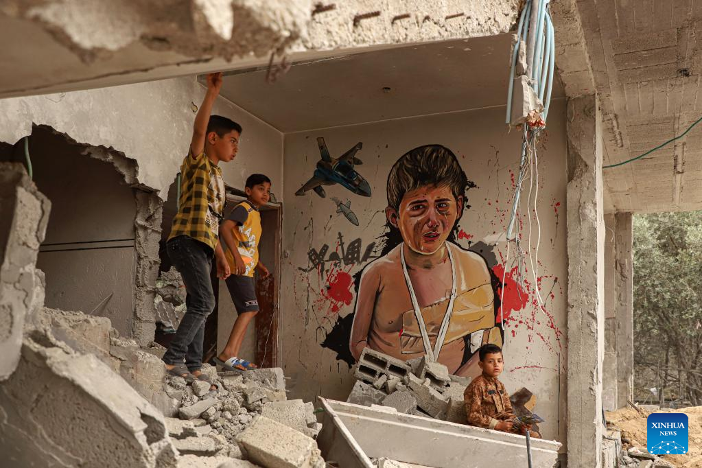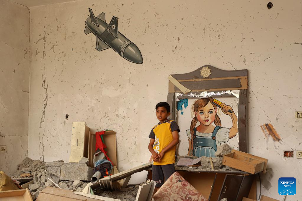 "The children of Gaza are subjected to killing, destruction, displacement, and fear, and no one cares about them," Hussain Abu Sadiq, a Gaza-based artist who drew graffiti on walls of destroyed houses portraying miserable children in Gaza, told Xinhua.