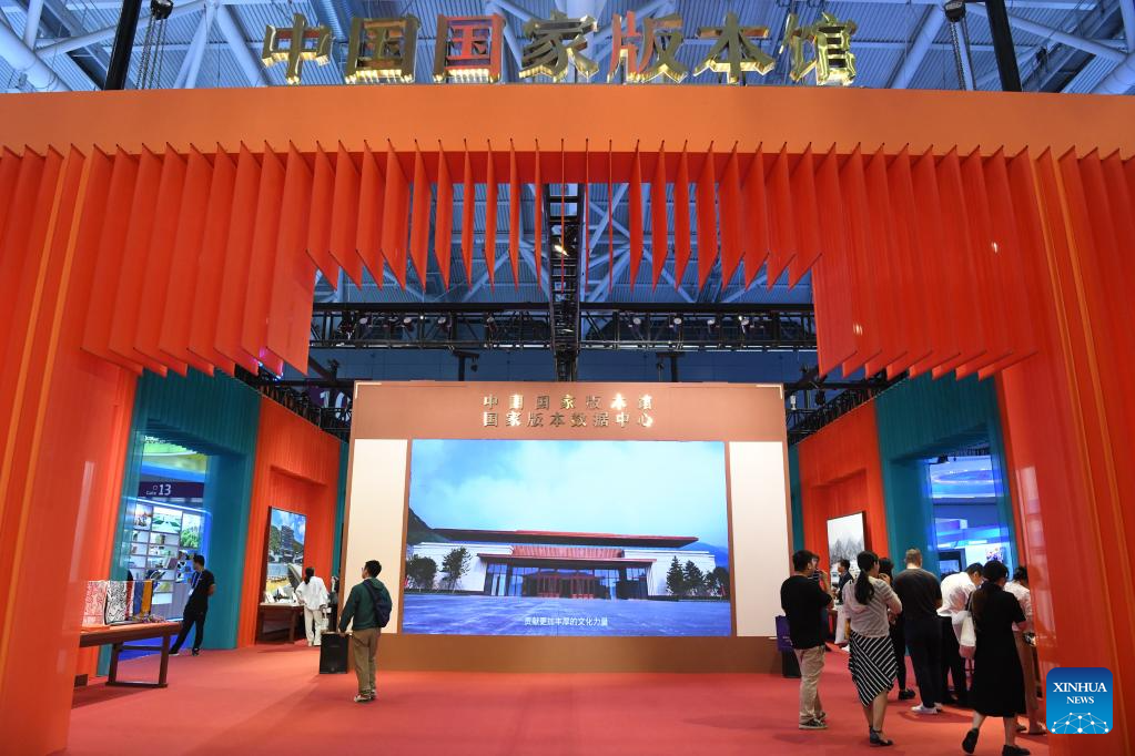 People visit the exhibition area of the China National Archives of Publications and Culture at the 19th China (Shenzhen) International Cultural Industries Fair in Shenzhen, south China's Guangdong Province, June 8, 2023. The five-day national-level fair closed Sunday in Shenzhen. (Xinhua/Liang Xu)
