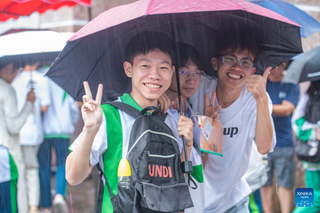 Examinees walk out of an exam site in Qionghai City, south China's Hainan Province, June 10, 2023.