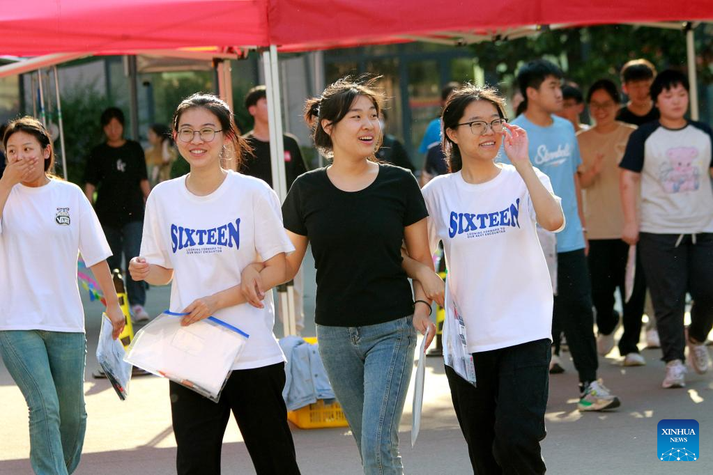 Examinees walk out of an exam site in Gaomi City, east China's Shandong Province, June 10, 2023.