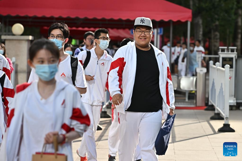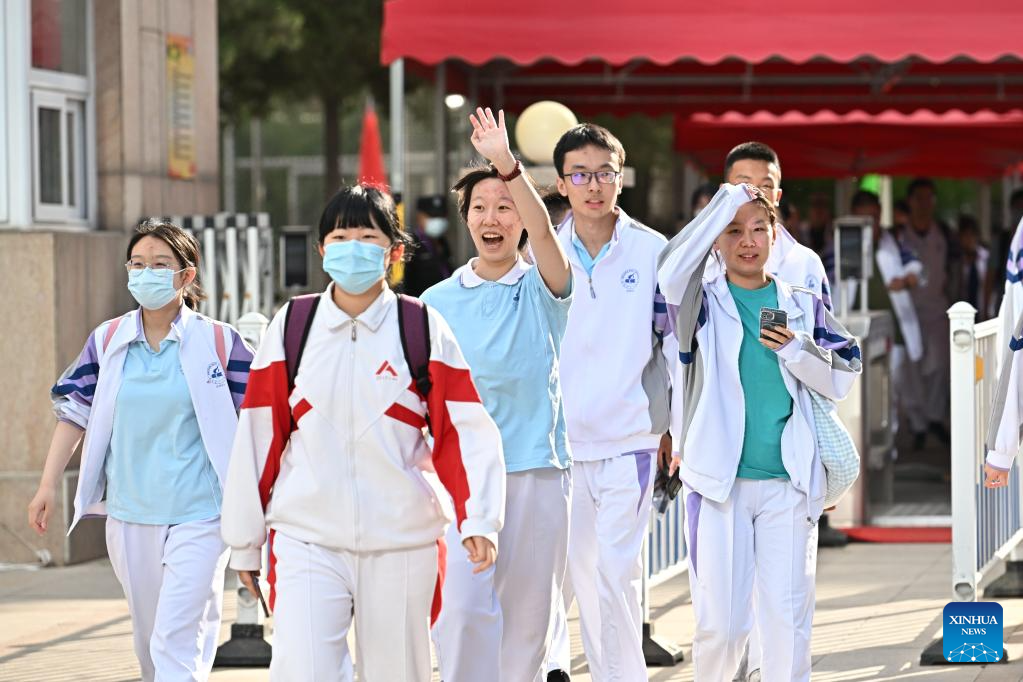 Examinees walk out of an exam site in Beijing, capital of China, June 10, 2023.
