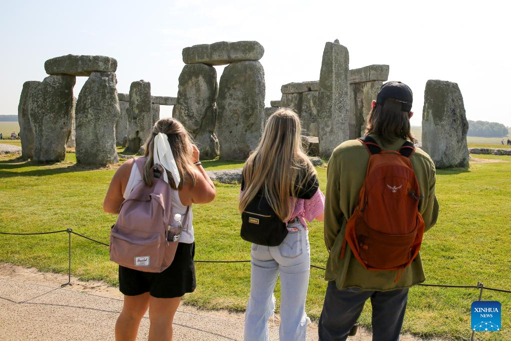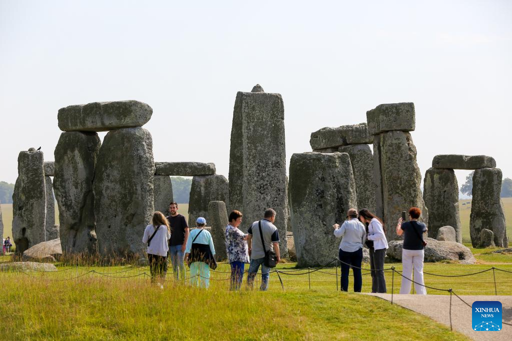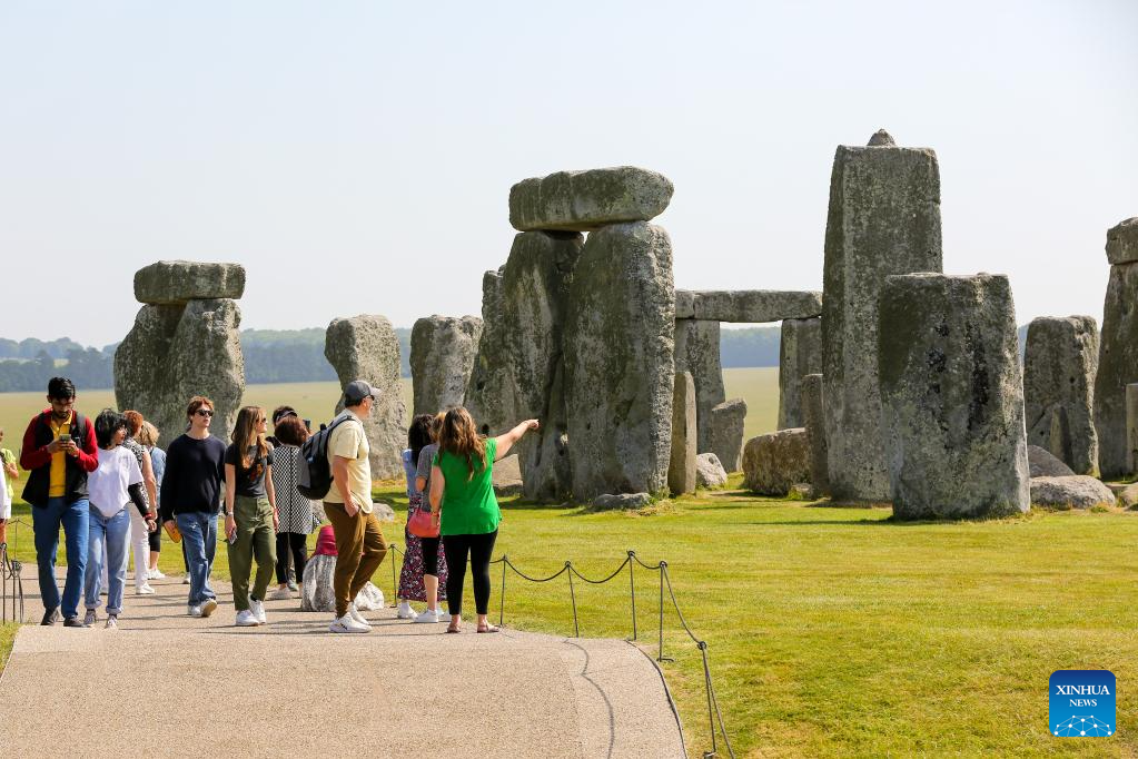 People visit Stonehenge in Amesbury, Britain, on June 10, 2023. The Stonehenge built in Neolithic Age, is among the most famous groups of megaliths in the world. It was listed as one of the UNESCO World Heritage Sites in 1986. (Xinhua)