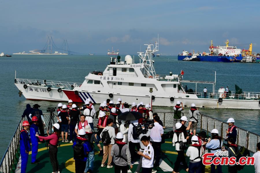 Journalists work at the construction site of Shenzhen-Zhongshan Link of the Guangdong-Hong Kong-Macao Greater Bay Area in Shenzhen, south China's Guangdong Province, June 11, 2023. (Photo: China News Service/Chen Jimin)