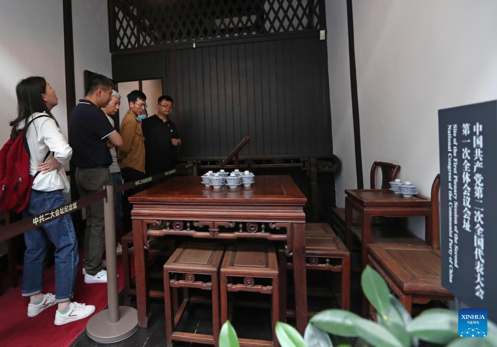 People visit the memorial of the second National Congress of the Communist Party of China in east China's Shanghai, June 7, 2023.