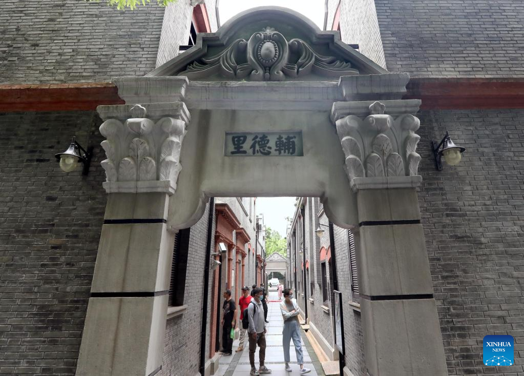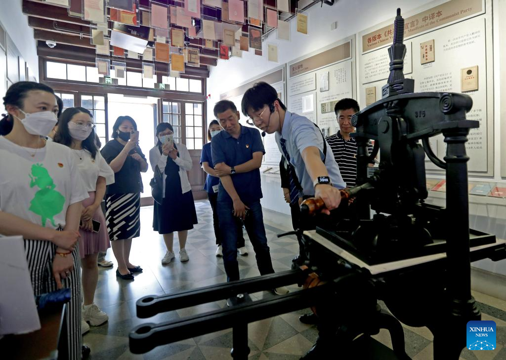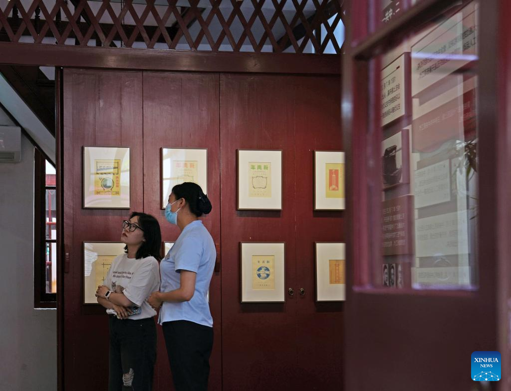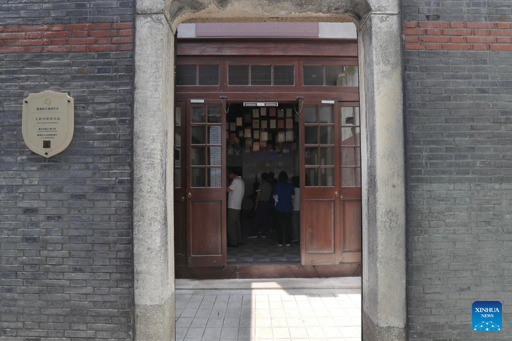 People visit the site of Youxin Printing Office, where the first full Chinese version of The Communist Manifesto was printed, in east China's Shanghai, June 9, 2023.