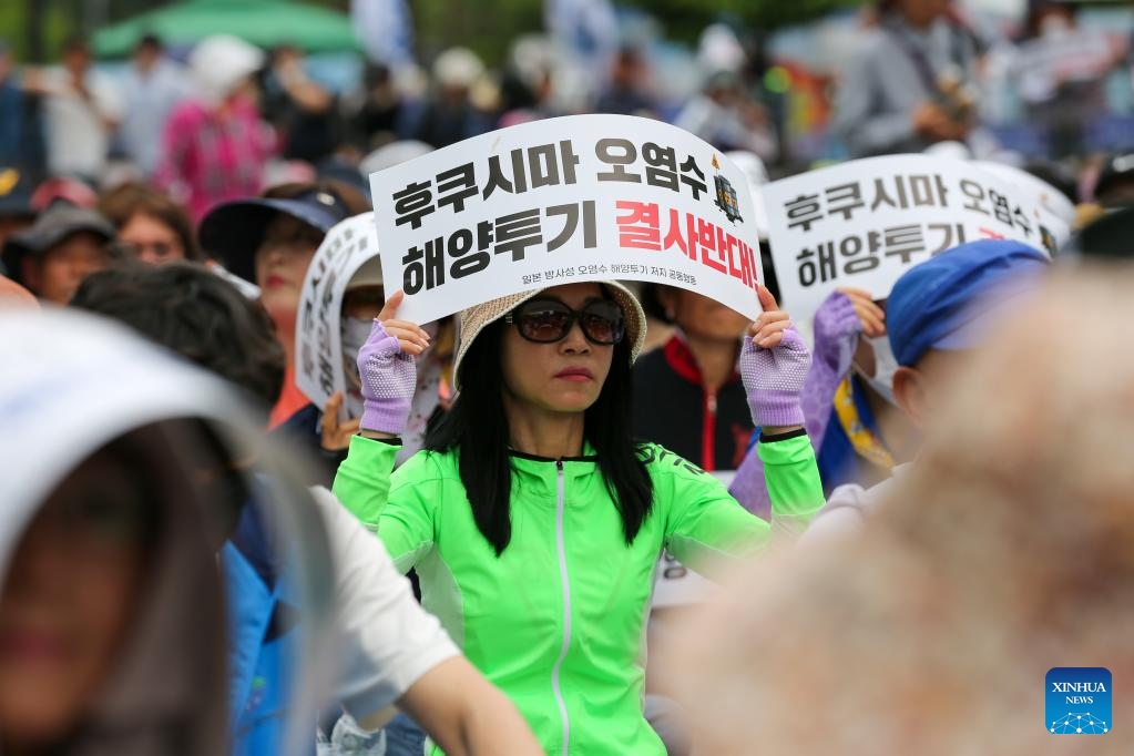 SEOUL, June 12 (Xinhua) -- Thousands of South Korean fishermen gathered on Monday near the parliamentary building in Seoul to clamor against Japan's planned discharge of radioactive wastewater from its crippled Fukushima Daiichi nuclear power plant into the Pacific Ocean.